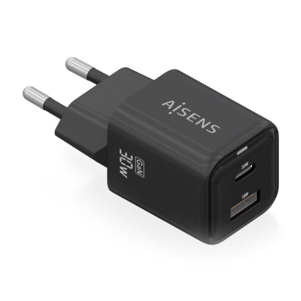 CARGADOR AISENS GAN 30W 1XUSB-C PD3.0 QC4.0 1XUSB-A QC3.0 NEGRO