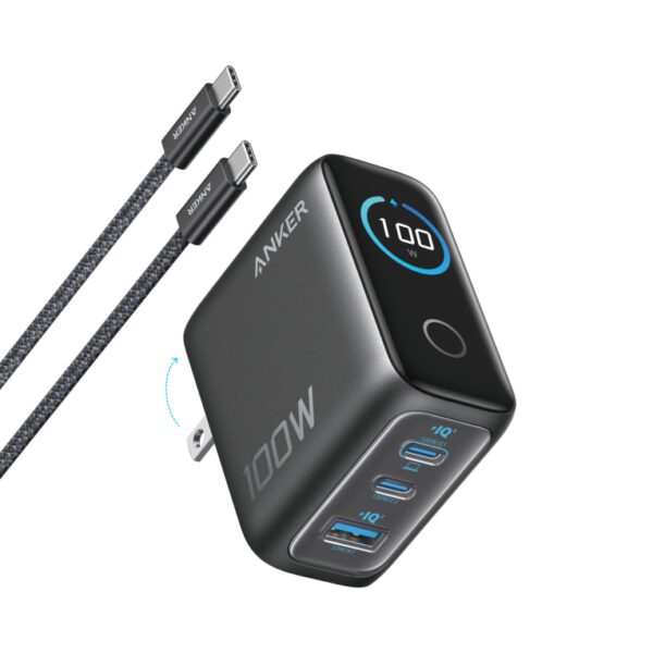 CARGADOR DE PARED ANKER 100W 3 PUERTOS CON PANTALLA INTELIGENTE NEGRO