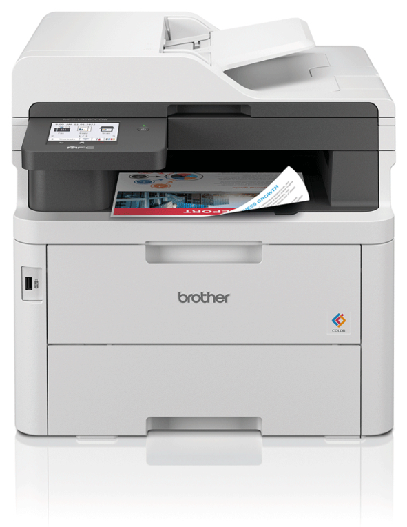 Los entornos de trabajo en la oficina o en el hogar cambian continuamente con el objetivo de aumentar la eficiencia y la productividad. Por eso con la MFC-L3760CDW cuentas con un dispositivo fiable que imprime rápidamente y sin esfuerzo, con:- Impresión a doble cara automática hasta 10 caras por minuto- Escaneado de 21 imágenes por minuto (3)- Pantalla a color táctil de 8,8 cm- Alimentador automático de documentos de hasta 50 hojas (11)- Conexión de red Gigabit Ethernet, WiFi 5GHz y USB- Bandeja de entrada de papel de 250 hojas(11)- Opción de contar con consumibles un rendimiento superior de hasta 3.000 páginas en negro y 2.300 en color(8)