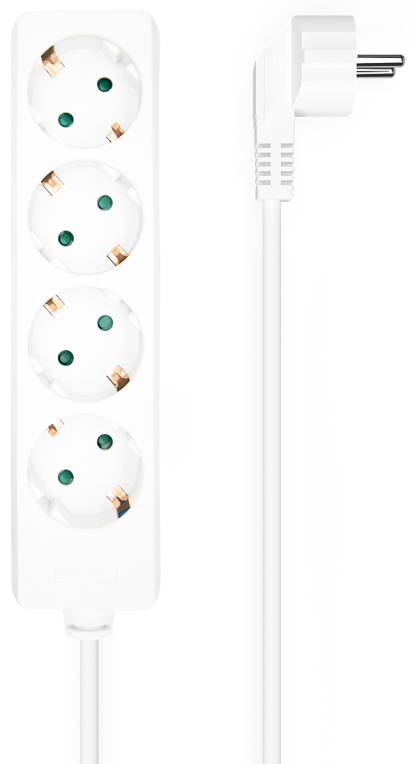Base Multiple 4 Tomas Sin Interruptor Con Cable 3×1.5 mm2, Blanco, 1.4 m