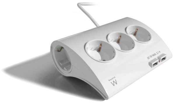 El zócalo de corriente de Multi Energía de escritorio EW3935 proporciona 5 tomas de corriente para dispositivos electrónicos tales como computadoras, equipos de audio / vídeo y otros electrodomésticos. Gracias a los dos puertos USB, es posible cargar sus dispositivos móviles, tales como teléfonos inteligentes y tabletas. Contiene protección infantil incorporada.