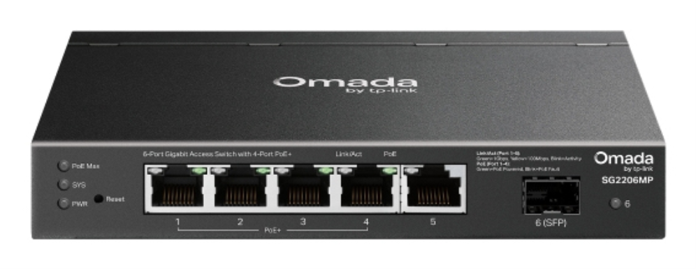 SWITCH POE OMADA SG2206MP 6-PUERTOS GIGABIT Y 4 PUERTOS POE
